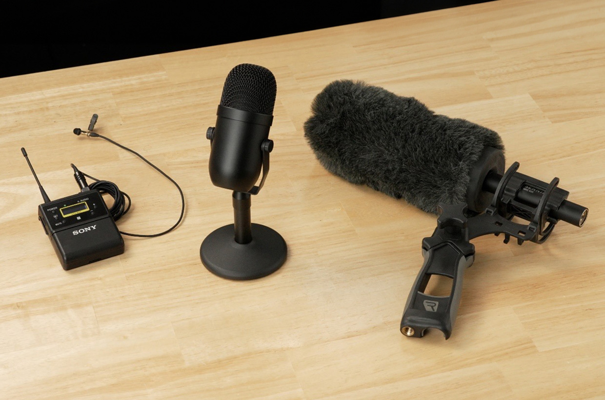 キレイに音を収録したい際には、特に高価なものでなくてもOKなので、必ずマイクを使いましょう。今回のようなインタビューなどは特に、マイクを使うことで各段と見やすくなります。インタビュー撮影で使えるマイクは主に3種類あり、通称「ピンマイク」と呼ばれるラベリアマイク、卓上マイク、そしてガンマイクです。確実に、そして簡単にクオリティを上げるのであれば、ラベリアマイクがおすすめです。他のマイクに比べてとても小型なので目立ちにくく、かつ口元に近づけられるのでクリアに音が収録できます。ワイヤレスのものと、カメラに直接つなげるものと2種類ありますが、やはり設定・接続が大変楽なワイヤレスが便利です。