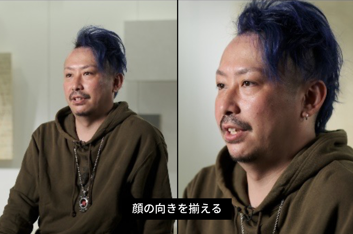 まずはカメラを2台以上用意することです。今回のインタビューの撮影では特に、いろいろな角度で撮影し、2台の映像を編集で繋げるとテンポUPもしますし、とても見やすくなります。また、2台で撮影する際は、角度だけでなく、映る顔の大きさを変えてカメラを設置しましょう。1台目は、正面で腰より上が映るサイズで、2台目は、横で顔をしっかりと映すサイズが基本形になります。この際に、2台のカメラに映る顔の向きが同じになるように気をつけましょう。