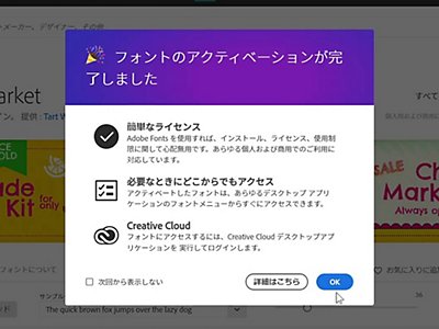 「フォントのアクティベーションが完了しました」の表示が出れば、 フォントが使用可能になります。