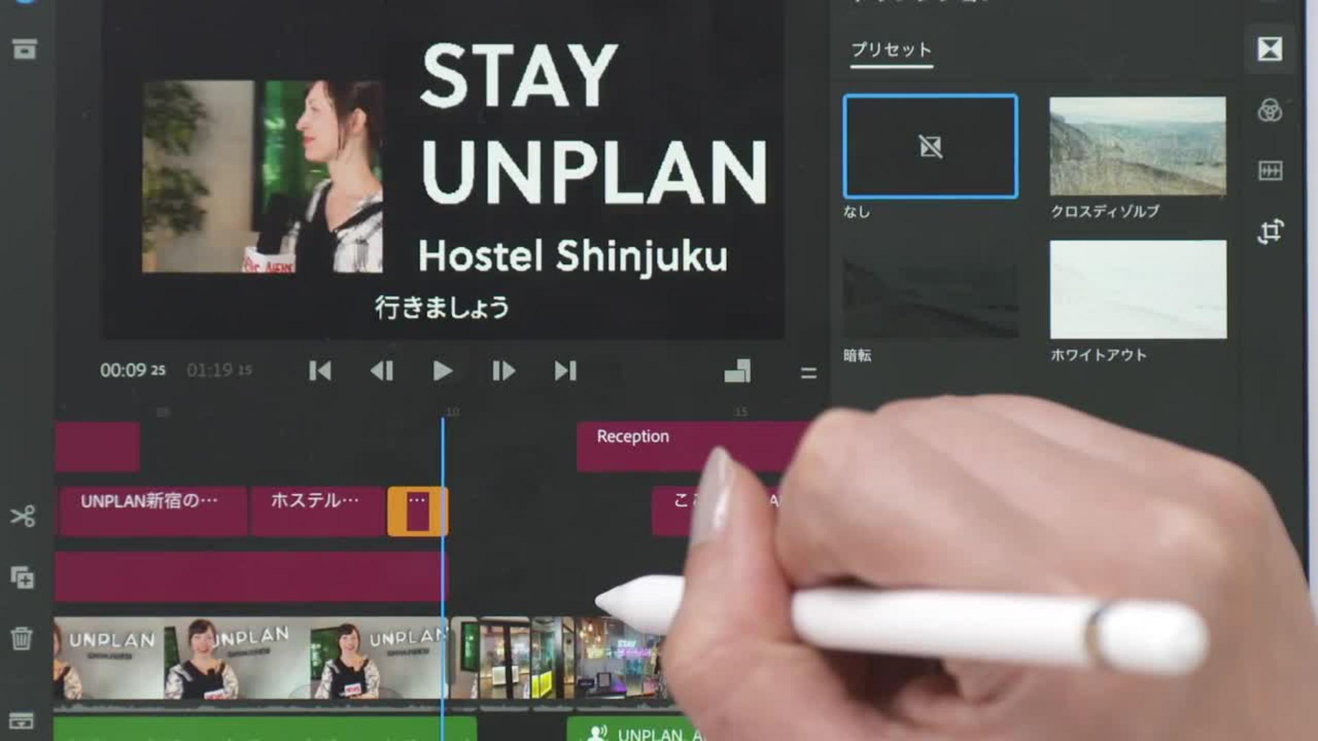 Premiere Rushは、パソコンだけでなく、タブレットやスマートフォンでも使えるマルチデバイス対応アプリです。今回は、ビジネス用の動画を題材に、素材の読み込みから編集、タイトルやBGMの追加、完成後の書き出しまで、タブレットのPremiere Rushのみで行う一連の作業を解説します。