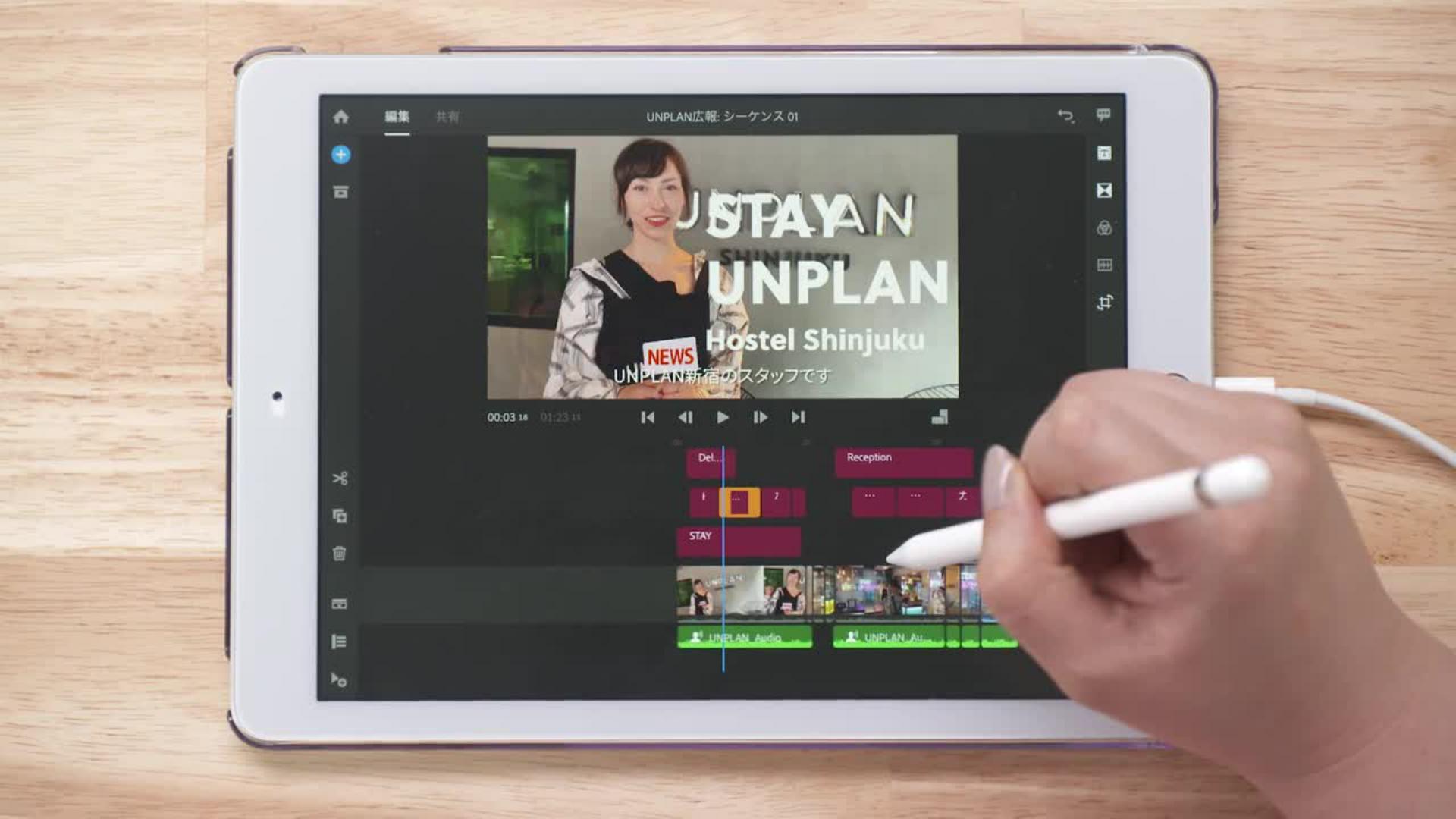 いかがでしたか?Premiere Rushがあれば、ビジネスに使用する動画も、タブレットだけで簡単に作成できます。作成した動画はクラウドに自動的に同期されるので、パソコンやスマートフォンからアクセスして、さらに編集を続けることもできます。