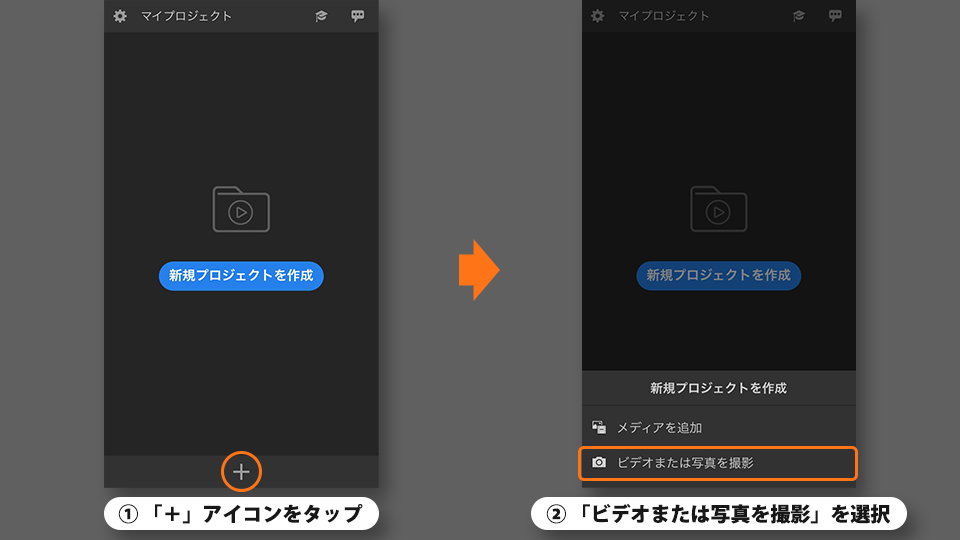 ビデオまたは写真を撮ってプロジェクトを作成します。