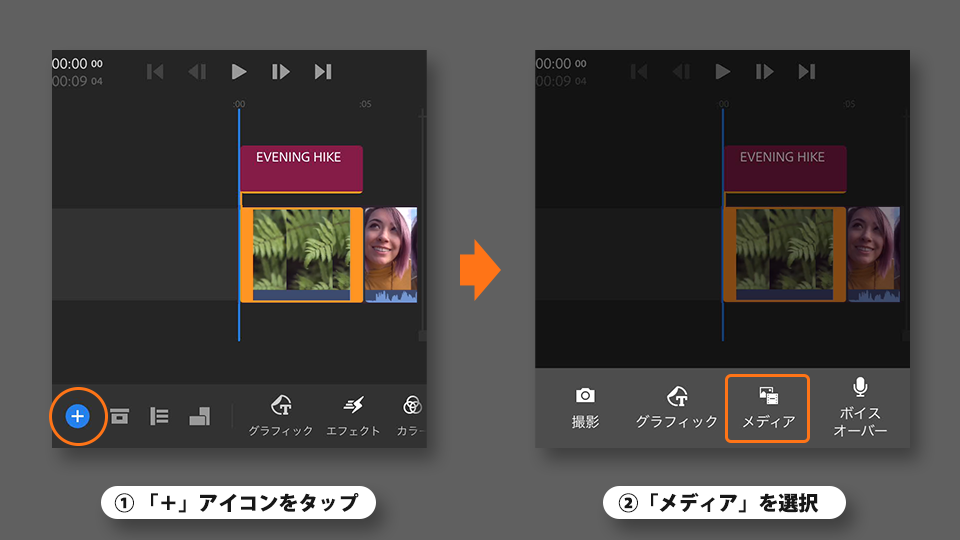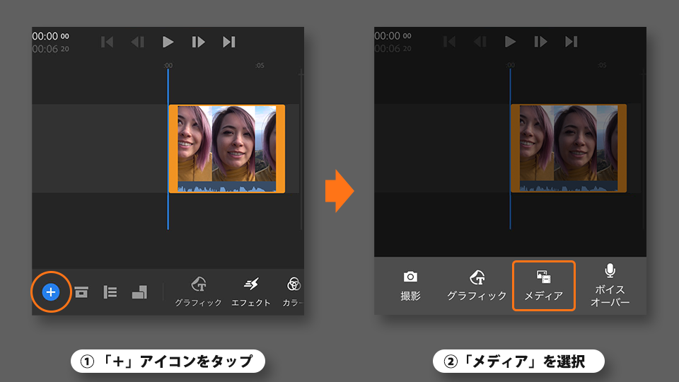 タイムラインに既存のビデオまたは写真を追加します。