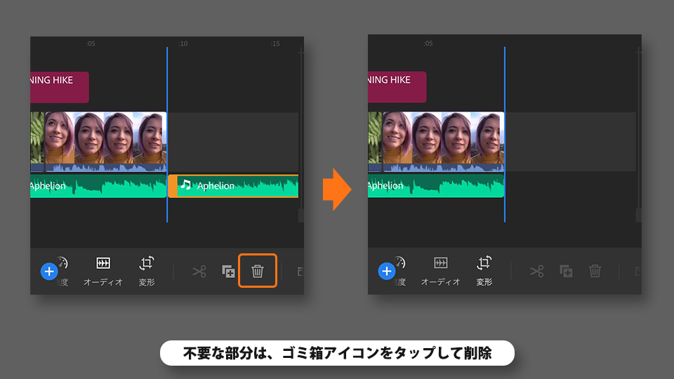 不要な部分はゴミ箱アイコンをタップして削除します。