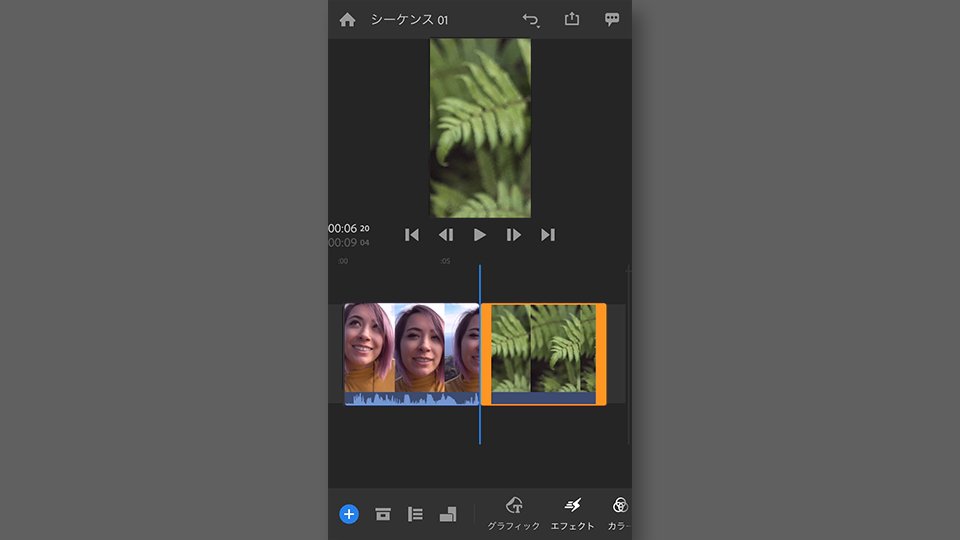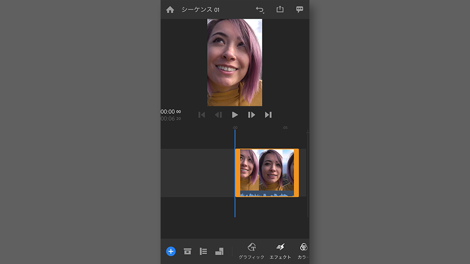 タイムライン上にビデオクリップが追加されました。