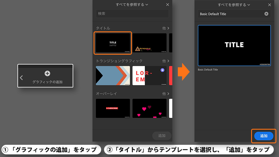 「タイトル」の一覧からテンプレートを選択し、「追加」をタップします。