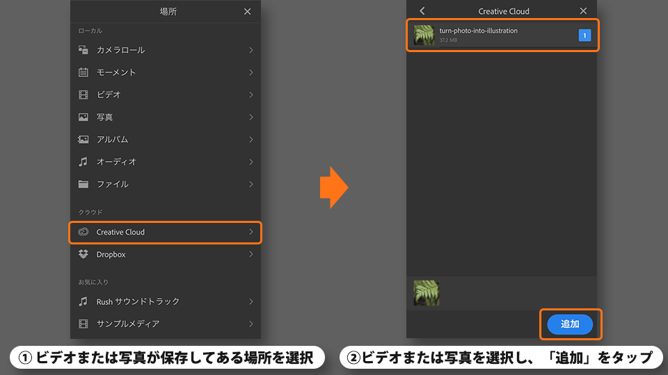 Adobe Premiere Rush の同期の仕組み について詳しくは、こちら の記事 をご参照くださ