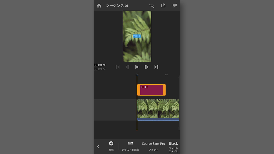 タイムライン上にテキストクリップが追加されました。