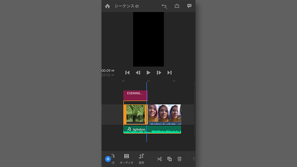 Premiere Rush にあらかじめ用意されている音楽を追加します。