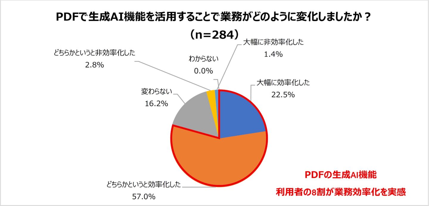 PDFの生成AI機能活用者の8割が業務効率化を実感、法務部門などで活用が進む