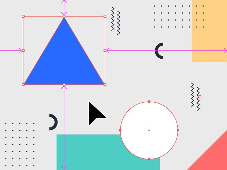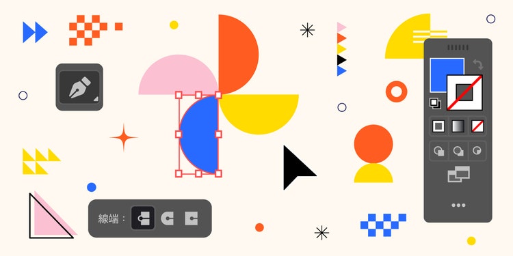楕円ツールや長方形ツールで、汎用性の高いベクターシェイプを作成します。スマートガイドをオンにしてシェイプをアレンジしたり、ペンツールを使って、フリーハンドで描いた絵をスムーズにしましょう。