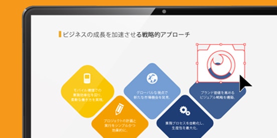 独自のタッチを加えてアイコンをデザインしましょう。そして、それをプレゼンテーションのスライドに加え、さらに強いインパクトで自分の意図を伝えましょう。