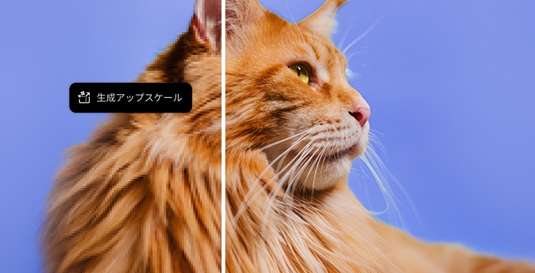 PhotoshopのAI画像サイズ変更ツールを使用すると、低画質画像をすぐに使える高画質アセットにすばやく変換できます。