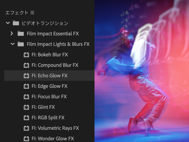 センス良く個性を際立たせ、雰囲気を演出。 {{premiere}} には、Film Impactの最新の映画のようなエフェクトが多数用意されています。追加費用なしで利用でき、思いのままに調整するのも簡単。GPU高速処理により、リアルタイムのパフォーマンスを実現します。