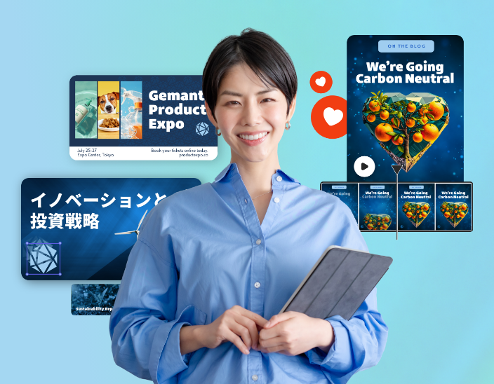Adobe Expressの豊富なデザイン素材や安心して商業利用できるAIを活用して、魅力的なコンテンツをかんたんに作成できます。