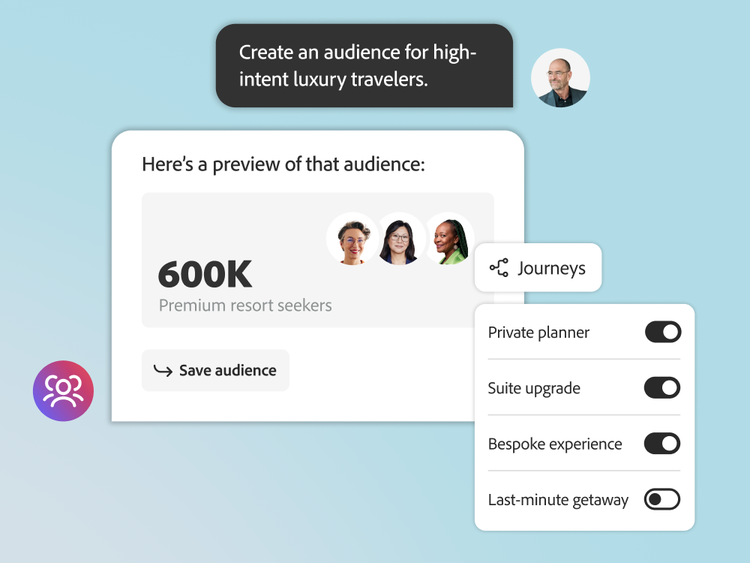 Adobe Experience Platform上に構築されたAdobe Real-Time CDPは、ゼロパーティからサードパーティデータまで、あらゆるソースの顧客データとアカウントデータを調和させる顧客データプラットフォームです。AIを活用してオーディエンスをリアルタイムでインテリジェントに作成、管理、アクティベートします。断片化されたデータを関連性の高いエクスペリエンスの基盤へと変換することで、Real-Time CDPはその瞬間のプライバシーに配慮したパーソナライゼーションを実現し、B2CおよびB2Bブランドがライフサイクルのあらゆる段階で顧客と効果的にエンゲージメントを実現できるよう支援します。