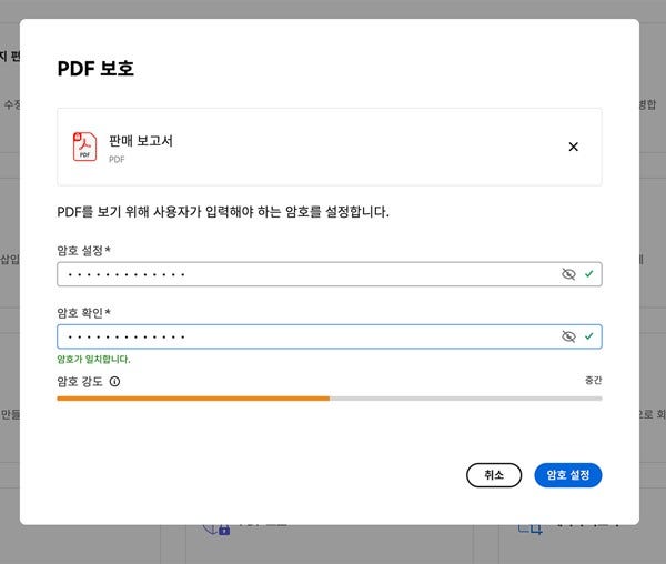 어도비 애크로뱃을 사용하여 디지털화한 문서에 암호를 설정하고 접근 권한을 관리할 수 있습니다. 업무 중 민감한 정보가 포함된 문서의 보안을 강화할 수 있어, 안심하고 문서를 관리, 공유할 수 있습니다. 이처럼 애크로뱃 프로그램을 사용하면 정보 보호 및 보안 절차를 간편화하는 동시에 강화할 수 있습니다.