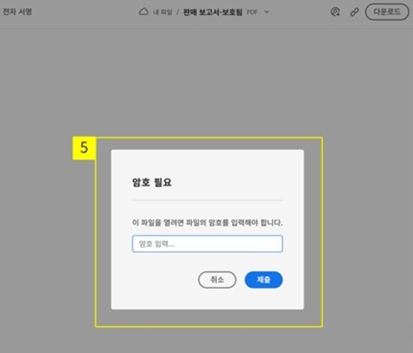 - PDF 열람 시 3에서 생성한 암호 입력 후 열람 가능
