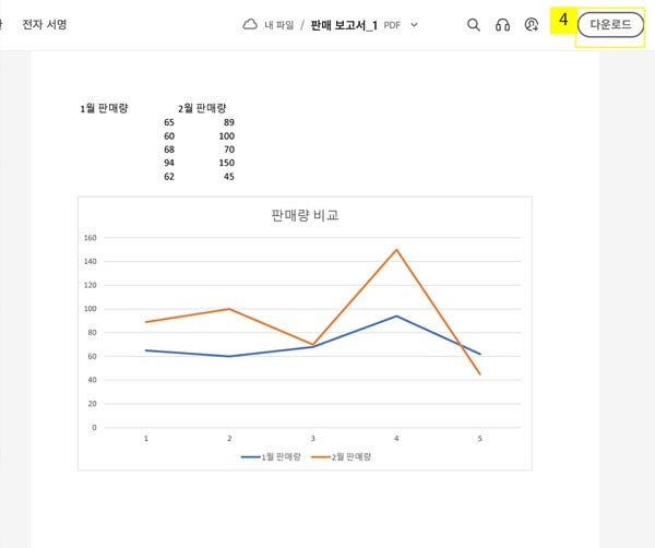 - PDF 파일로 변환 후, ‘다운로드’ > 자동으로 엑셀 PDF 변환된 파일을 원하는 위치에 저장