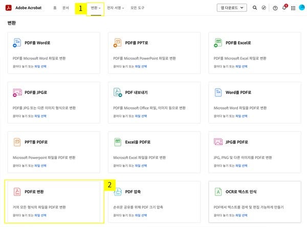 - PDF로 변환하려는 파일 끌어다 놓기 > ‘계속’