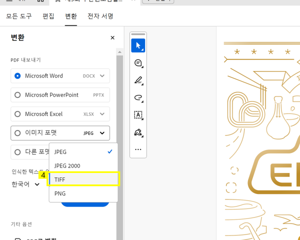 - 이미지 포맷 > ‘TIFF’ 클릭