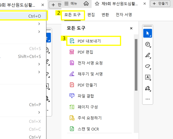- 메뉴 > ‘다름 이름으로 저장’ 클릭