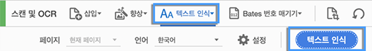 - [텍스트 인식] 클릭 > 페이지 및 언어 지정 후 [텍스트 인식] 버튼 클릭