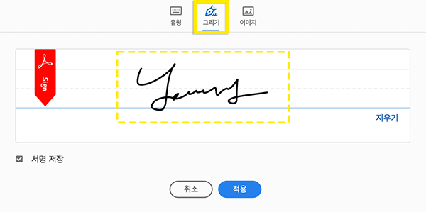 1. Adobe Sign 툴 실행 > [그리기] 옵션 클릭