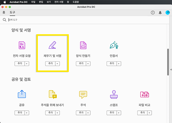 Adobe Acrobat 앱에서 Adobe Sign 툴 이용하기