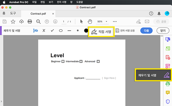애크로뱃 앱에서 맥북 사인 만들고 전자계약서를 완성해보세요.
