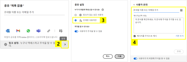 - 어도비 애크로뱃으로 PDF 문서 열기 > [공유] 클릭