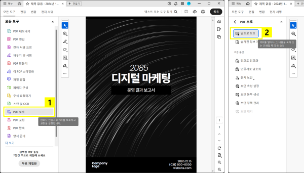 - 어도비 애크로뱃으로 PDF 문서 열기 > [모든 도구] > [PDF 보호] 클릭