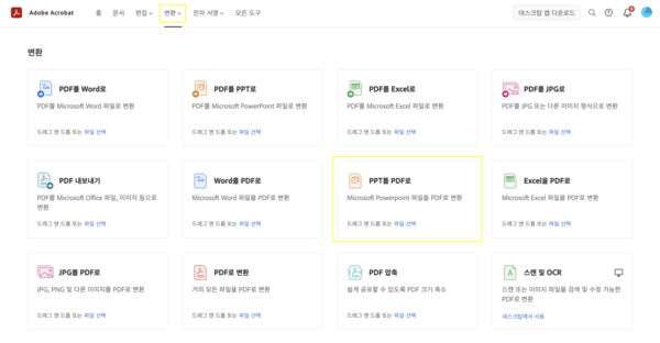 이처럼 PDF 변환 사이트 어도비 애크로뱃(Adobe Acrobat) 온라인 서비스에서는 PPT PDF 변환뿐만 아니라 PDF PPT 변환, 워드 PDF 변환 등 다양한 PDF 파일 변환 기능을 이용할 수 있습니다. 또한 PDF 수정 프로그램 어도비 애크로뱃(Adobe Acrobat)에서는 여러 가지 무료 PDF 편집 기능도 제공하고 있으니 필요에 따라 알맞게 이용해 보세요.