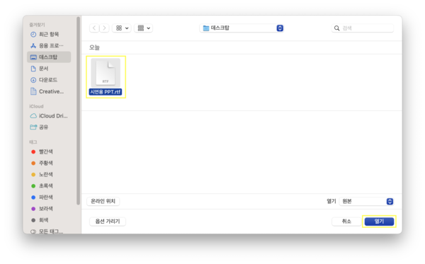 1. 저장해두었던 .rtf 문서 선택 > [열기]