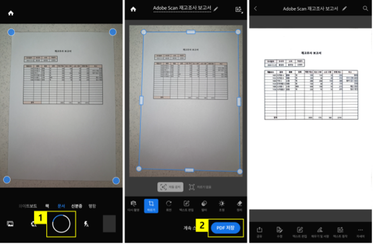 Adobe Scan 앱에서 종이 문서 스캔하고 PDF 저장하기