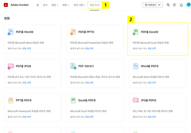 온라인 애크로뱃으로 PDF파일 엑셀 변환하기