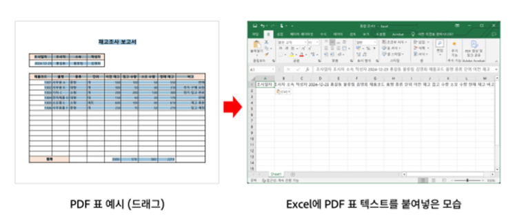 오늘도 김대리는 상사에게 받은 PDF 보고서 속 표를 엑셀로 옮겨 수정해야 하는 상황에 처했습니다. 하지만 텍스트를 그대로 복사해 붙여넣자 수식이 다 깨져버리고, 서식도 엉망이 되어버렸죠. 실무에서 여러 사람과 문서를 공유할 때는 수정이 필요 없는 경우 대부분 PDF 파일을 사용하지만, 이렇게 PDF 내의 표나 데이터를 엑셀로 옮겨 다시 작업해야 할 때는 번거로움이 발생합니다.