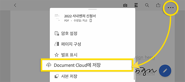 - [Document Cloud에 저장] 툴 클릭