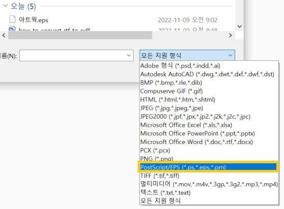- [파일 선택] > [PostScript/EPS(*.ps,*.eps,*.prn)]