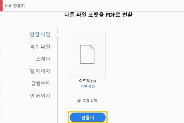 어도비 애크로뱃(Adobe Acrobat)을 사용하면 별도의 EPS 파일 뷰어 없이 EPS 문서를 손쉽게 PDF 변환 가능합니다.