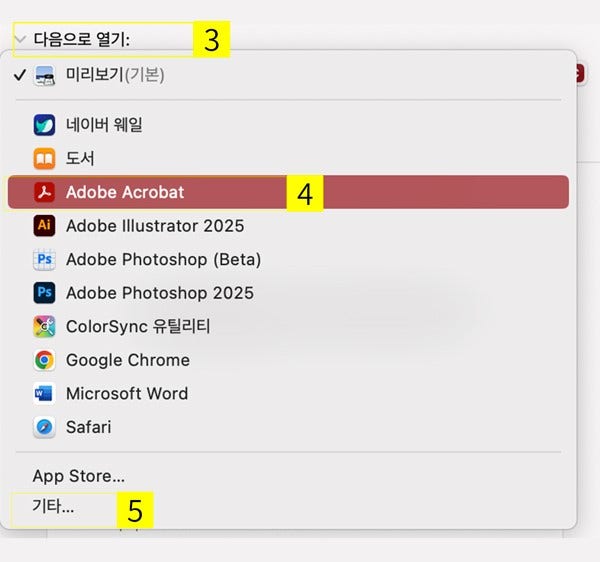 - 드롭다운 목록에서 Adobe Acrobat Reader 또는 Adobe Acrobat 선택