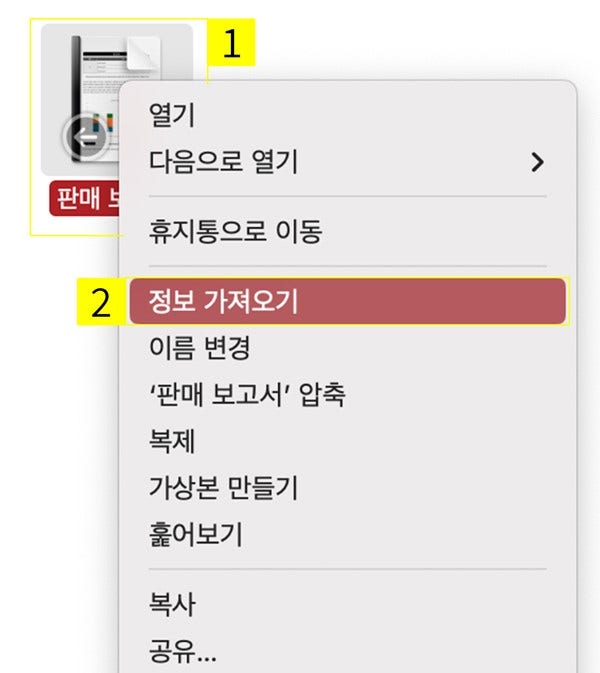 - Finder에서 PDF 파일의 아이콘 선택 > 마우스 오른쪽 버튼 클릭