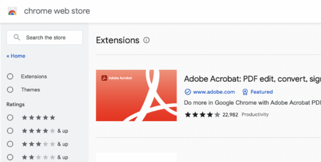 1. Google Chrome 웹 스토어에서 Acrobat 확장 프로그램을 검색합니다.