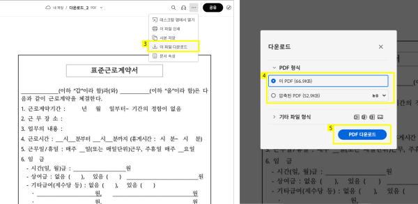 - ‘PDF 병합 및 분할’ 기능은 여러 PDF 파일을 하나로 합치거나, 단일 파일을 페이지 별로 분할할 수 있어, 문서 관리를 더욱 편리하게 해주는 기능입니다. 예를 들어, 동일한 내용의 계약서를 여러 건 작성할 때, 필요한 부분만 분할하여 다른 계약서에 병합하면 작성 시간을 효과적으로 절약할 수 있습니다.