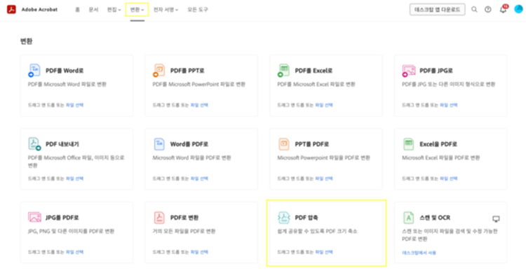 - [변환] > [PDF 압축] 선택