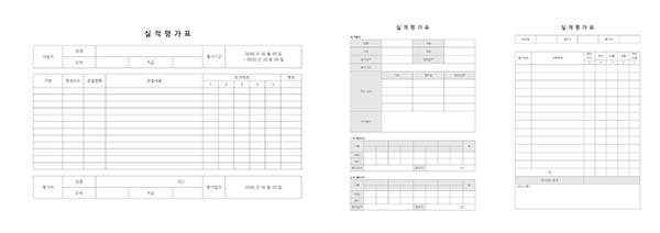 실적평가표 양식을 다운로드하면, 인사 평가에 활용할 수 있는 3가지 종류의 양식을 확인할 수 있습니다. 직원 평가 시스템에 따라 적절한 실적평가표 양식을 선택해 인사 고과에 사용해 보세요.