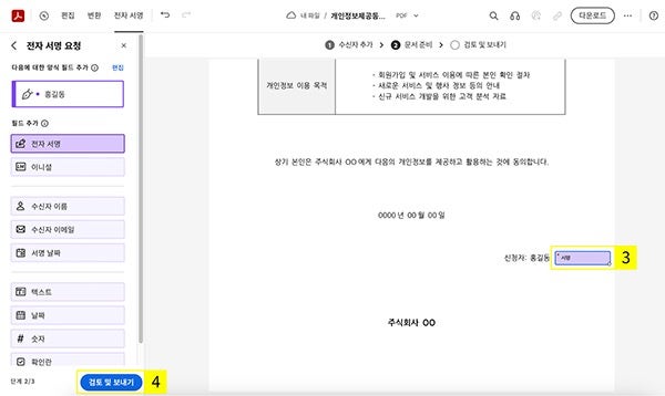 애크로뱃 온라인에서 개인정보제공동의서 수정하기