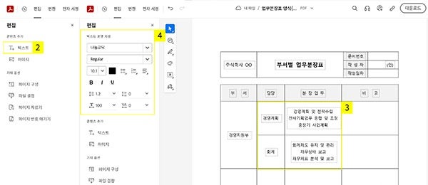 애크로뱃에서 업무분장표 양식 수정하기