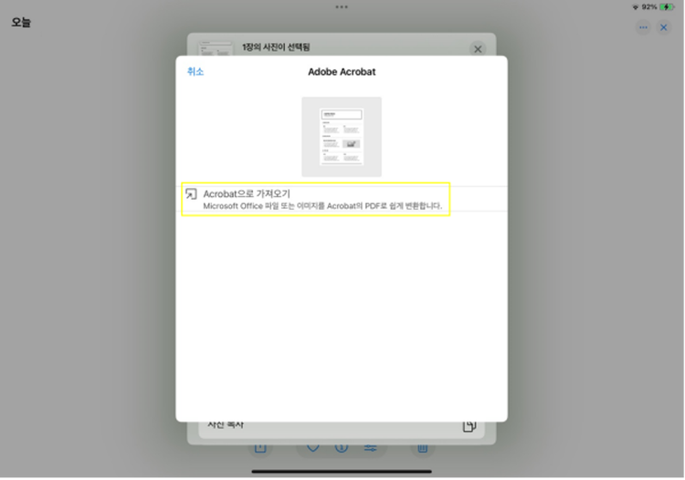 사진첩 이미지를 애크로뱃 앱으로 가져오기