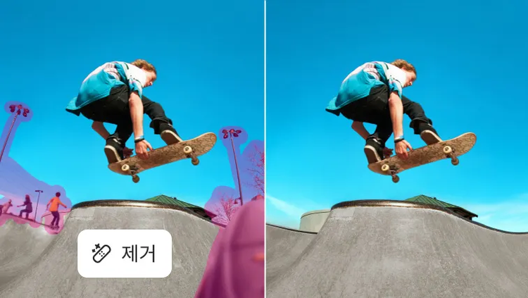 새로워진 제거 툴을 사용해 보세요. 이미지에서 불필요한 개체나 피사체를 빠르게 제거하여 이미지를 깔끔하게 완성할 수 있습니다.